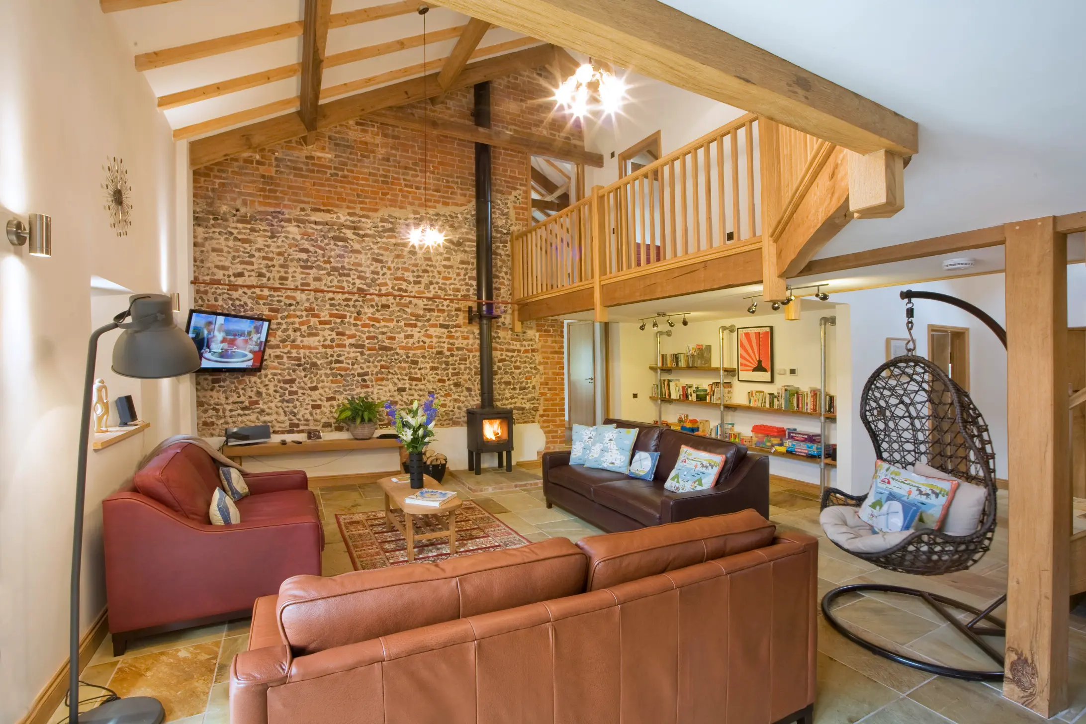 The Threshing Barn has its main living area all on one level and free from steps and stairs. It can be accessed by a permanent ramp from the outside. The ground floor surface in the barn’s main living area is conveniently located on a single level, with no internal steps or stairs. It can be accessed from outside via either a ramp or steps.